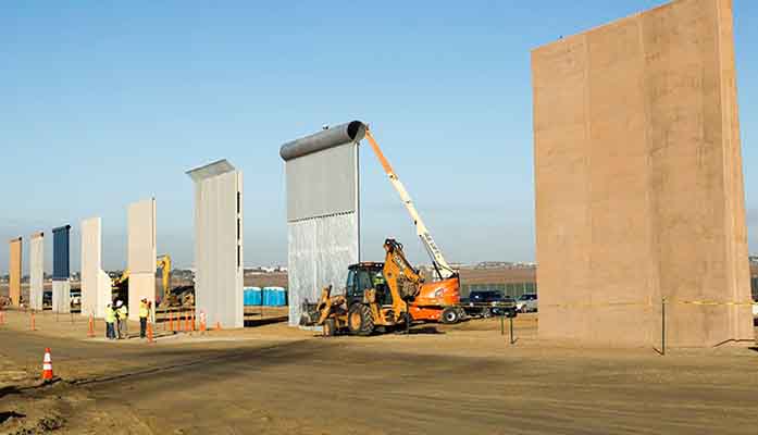 Ground views in this file photo from last year of different sections of border wall as they take shape during the Wall Prototype Construction Project near the Otay Mesa Port of Entry in San Diego. For the last 12 years, the Department of Homeland Security has been able to waive regulations that interfere with wall construction. (Photo by Mani Albrecht/U.S. Customs and Border Protection)