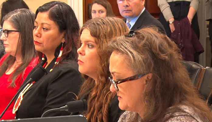 From left, University of Kansas professor Sarah Deer, North Dakota state Rep. Ruth Buffalo, National Indigenous Women’s Resource Center counsel Mary Kathryn Nagle and Tami Jerue of the Alaska Women’s Resource Center, wait to testify. (Photo by Micha Alise Bledsoe/Cronkite News)