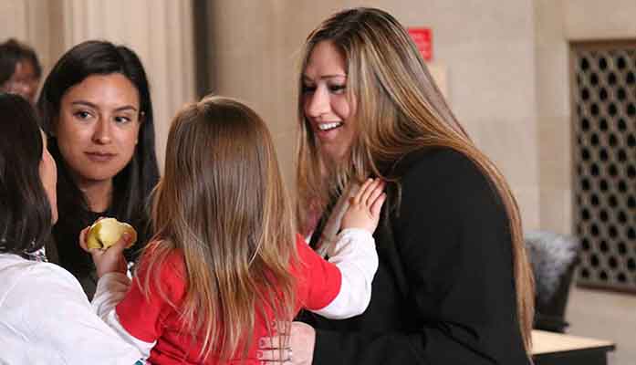 Gabriela Rivera, right, said she hopes that testimony about the proposed rule change from a lot of moms about a lot of children’s lives that are going to be affected will sway EPA administrators. (Photo by Andrew Howard/Cronkite News)