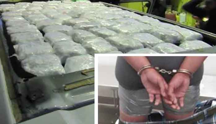 drugs Officers discovered more than 70 pounds of meth inside of the roof of a smuggling vehicle. A drug smuggler was found to be hiding meth around his thighs. [Photo courtesy CBP]