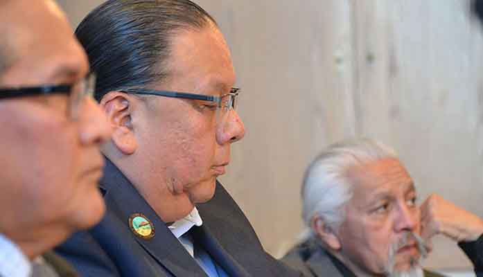 Gila River Indian Community Gov. Stephen Roe Lewis, center, prepares to testify to a Senate committee on tribal roads and tribal sovereignty. Witnesses told the committee that federal support for roads is lacking, which affects other services. (Photo by Keerthi Vedantam/Cronkite News)