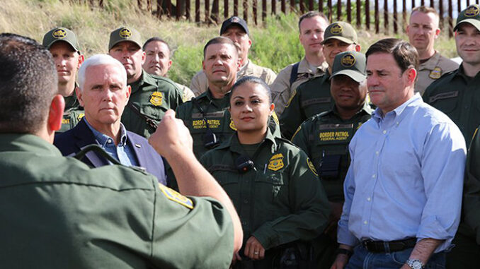 Standing with Gov. Doug Ducey near the razor-wire-strewn steel fence that separates the cities, Pence called on Democrats in Congress to fix what he called the “magnet of our broken asylum system.”