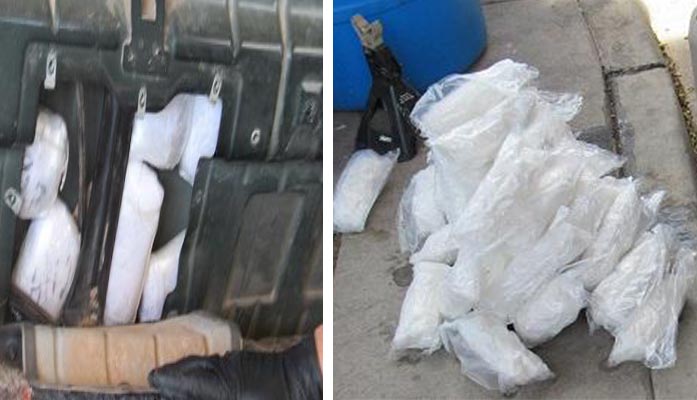 drugs Officers removed nearly 75 pounds of meth from a smuggling vehicle. Drugs were hidden within the rear of the cab wall of a truck. [Photo by CBP]