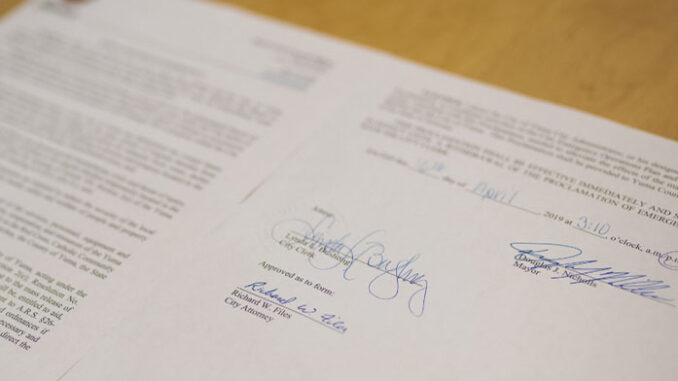 “By signing this declaration,” explained Mayor Nicholls, “we’re looking to do a couple of things. Not just locally, but throughout the country. It is clear that we are in a position that needs to be rectified on a national level, not just with the resources of our Yuma community, and to try to avert a threat of hundreds of people roaming the streets looking to satisfy basic human needs in our community and not having the resources to do so, and the reaction of the citizens of Yuma looking to protect their property.”