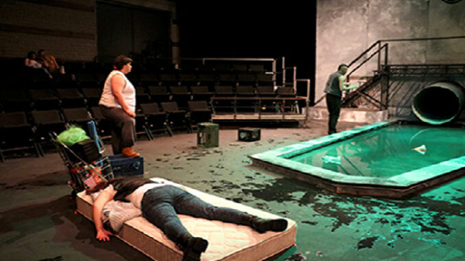 They missed something special. I have not been so moved by a play in a great many years, and the cast ignored the empty seats in the 75-seat room and gave it their all. The story, a series of linked vignettes, is set in a young people’s encampment next to a Seattle sewer outlet. Homeless, hungry and hostile, these throw-away, runaway, don’t-fit-in kids share stories of their lives seeking connection, and love, always remembering that, “There are monsters here!”