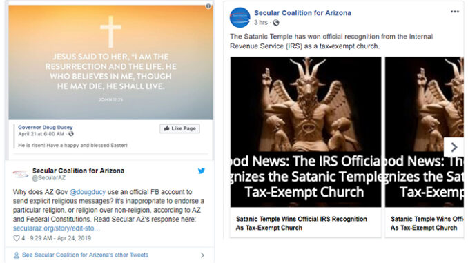 At the same time the Secular Coalition for Arizona is demanding that Governor Doug Ducey remove an Easter Facebook post that celebrated his Christian faith, the group is touting the Satanic Temple’s official recognition from the Internal Revenue Service (IRS) as a tax-exempt church.