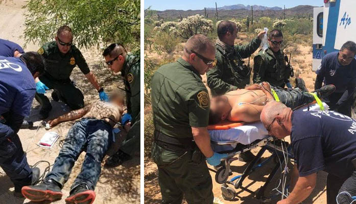 bp U.S. Border Patrol agents from the Ajo Station responded to an illegal alien in distress East of Why, Arizona. With a response from local partners, the man was successfully treated. [Photo from CBP]
