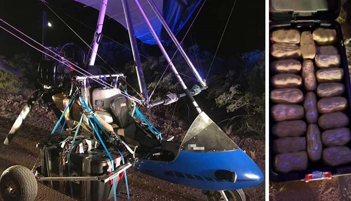 Agents encountered the aircraft abandoned along a rural dirt road, with two large plastic storage containers affixed to the fuselage. [Photos provided by CBP]