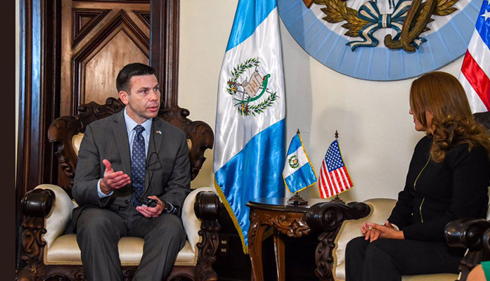 dhs Acting Secretary Kevin K. McAleenan takes a tour of the Repatriation and Reception Center in Guatemala City with the First Lady of Guatemala, Patricia Marroquín. [Photo courtesy DHS]