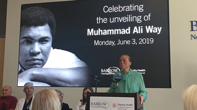 PHOENIX – The legacy of Muhammad Ali is a layered and complicated one, wrought with moments of controversy and bravery in the face of extreme pressures. Yet three years after his death, one of Ali’s most lasting contributions may be his founding of the Muhammad Ali Parkinson’s Center and his work with the Barrow Neurological Institute in its fight to eradicate Parkinson’s disease.