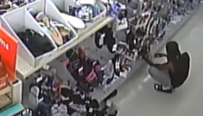 Surveillance camera captures Dravon Ames in apparent shoplifting.