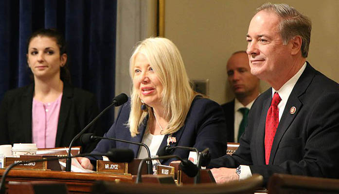 Rep. Debbie Lesko, R-Peoria, took the opportunity of Thursday’s hearing on troops on the border to criticize House Democrats for not passing an emergency border funding bill. With her is Rep. John Joyce, R-Pa. (Photo by Miranda Faulkner/Cronkite News)