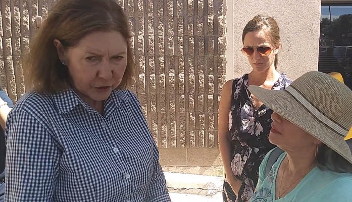 kirkpatrick Rep. Ann Kirkpatrick cuts short a conversation with grieving Angel grandmother Laura Basurto during Kirkpatrick’s Congress On Your Corner event on Saturday, June 22, 2019.