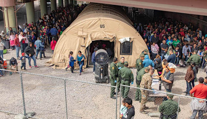 Border Patrol agents process scores of migrants at the border in El Paso, Texas, in this photo from March. Border agencies have said they’re in danger of running out of money for migrant detention facilities if Congress does not act to approve emergency funding. (Photo by Mani Albrecht/U.S. Customs and Border Protection)