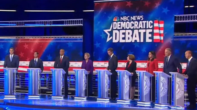 Regarding healthcare, Bernie Sanders et al. are all-in on single-payer, government-run insurance which will wipe out private insurance and force many hospitals to close. Some other Democrat candidates were more circumspect and propose a combination of single-payer and private insurance. All 10 of the Thursday night candidates proposed giving free medical care to illegal immigrants.