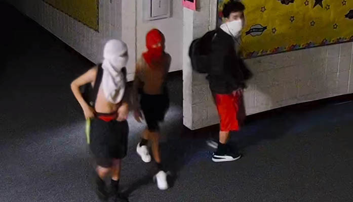 theft Surveillance video provided by the school shows three suspects, all with their faces covered, entered into the school around 1:00 am Wednesday morning.