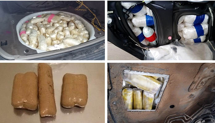 drugs Officers discovered almost 107 pounds of meth from the trunk of a smuggling vehicle. [Photos courtesy CBP]