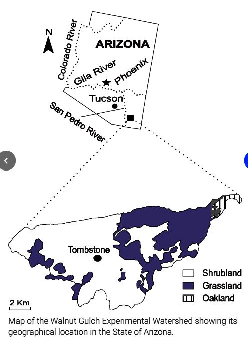 The study was conducted in the Walnut Gulch Experimental Watershed which is centered on Tombstone, AZ. Data were collected from 59 rain gauges dispersed over an area of about 58 square miles. (Metropolitan Tucson covers about 237 square miles.) In my opinion, making broad claims from such a small sample base is problematic.