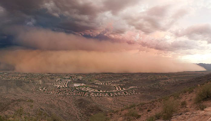 A photo taken from South Mountain shows a dust storm moving across the valley. (Photo courtesy of Alan Stark/Flickr)