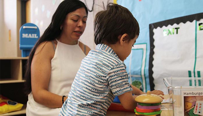 jessica bodey Jessica Sauter said she has seen improvement in her son Bodey’s developmental growth, social skills and cognitive skills after regularly attending the Creighton Family Resource Center. (Photo by Abbagail Leon/Cronkite News)