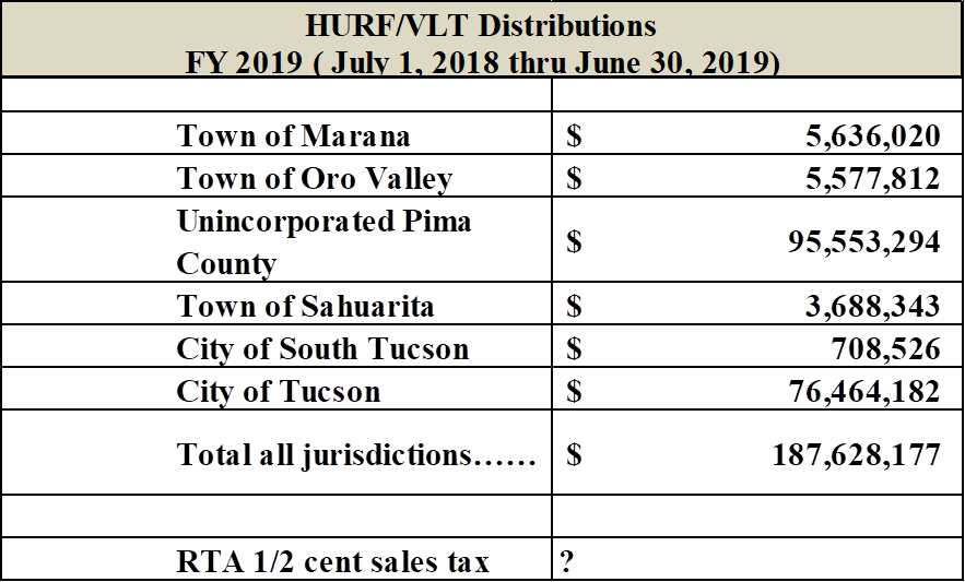 Fiscal Year 2019 ended on June 30, 2019 and the State of Arizona distributions to jurisdictions from the gas tax, known as HURF (Highway User Revenue Fund), and VLT (Vehicle Registration/License Tax) show record breaking numbers.
