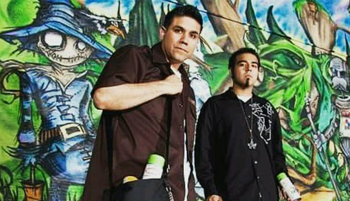 noe Noe “Such Styles” Baez, left, and his son Champ show off their “Wizard of Az” creation in 2007. Friends and fellow artists believe the two may be the only team of family graffiti artists in Arizona. (Photo courtesy Such Styles)