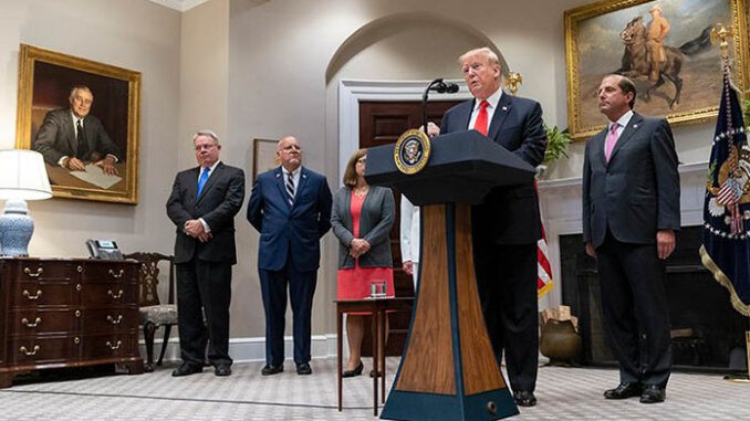 During a White House announcement of the grant Wednesday, President Donald Trump said the government has “done a really good job with opioids and getting people to stop using them and prescribing them.”
