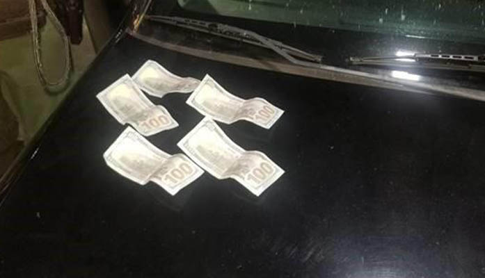 Five counterfeit $100 bills were found in the front passenger door. [Photo courtesy CBP]