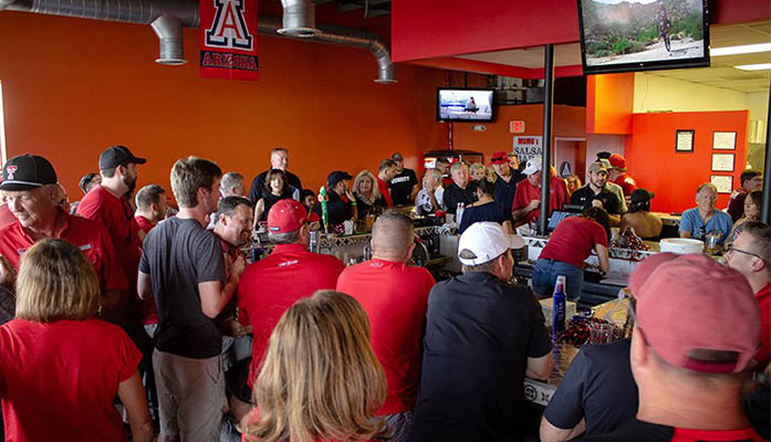 Texas Tech alumni and fans who live in Arizona watched the Red Raiders play against the Arizona Wildcats. Many of the fans have adopted the Cardinals as their NFL team, and are proud of fellow alumnus Kliff Kingsbury. (Photo by Sarah Farrell/Cronkite News)