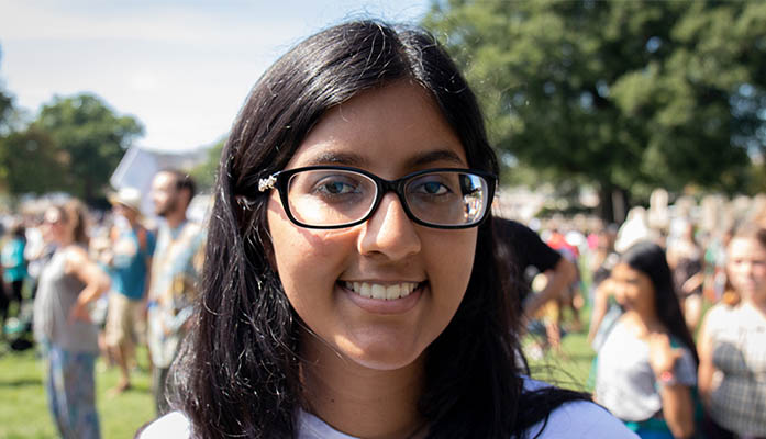 Amritha Karthikeyan, a senior BASIS Phoenix student and member of Arizona Youth Climate Strike, said she was happy to join the strike in D.C. on Sept. 20, 2019, because she couldn’t attend the protest she helped plan in Phoenix. (Photo by Kailey Broussard/Cronkite News)
