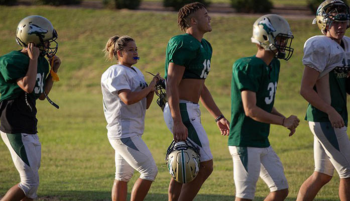 football Julia Chambers faced criticism when she decided to play football but opted to ignore the skeptics. (Photo by Sarah Farrell/Cronkite News)