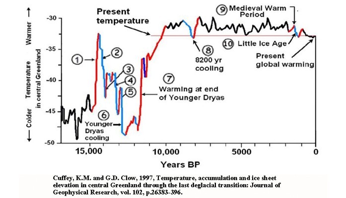 In the past several weeks we have seen many demonstrations by brainwashed young people and others who think the world will end if global temperatures exceed two degrees Celsius (now it’s down to 1.5 degrees). The trouble with that claim is that we’ve been there and done that and nothing bad happened. During the past 10,000 years (the Holocene), Earth experienced several cycles of warming and cooling which exceeded the mythical two degree limit. Civilizations thrived during the warm periods and had a harder time during cold periods.
