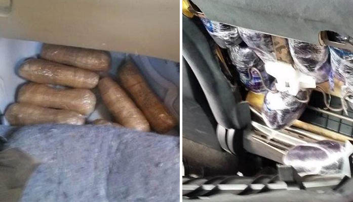 CBP officers at the DeConcini Crossing seized 123 pounds of meth from throughout a Ford sedan early Friday morning. CBP officers at the Port of Nogales seized a combination of fentanyl, heroin and meth from beneath the seats of a smuggling vehicle. [Photos courtesy CBP]