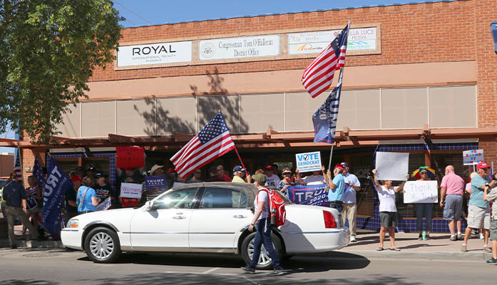 rally stop the madness Arizona GOP leaders organized a “Stop the Madness” rally against the impeachment inquiry into President Trump in Casa Grande. O’Halleran supports the impeachment inquiry. (Photo by Annika Tomlin/Cronkite News)