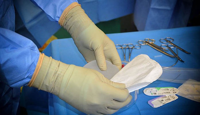 A surgeon prepares a breast implant. A federal appeals court rejected an Arizona woman’s case against the manufacturer of an implant that leaked an injured her, saying federal law protected the company. (Photo by Docteur Spitalier Philippe/Creative Commons)