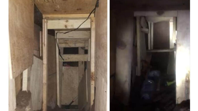 According to U.S. Customs and Border Protection (CBP), “the entrance to the tunnel was located in the concrete floor of a drainage system. A pile of dirt concealed the tunnel entrance, which was covered by several sheets of plywood. Beneath the plywood, a cement cutout plugged the hole. The tunnel was approximately three feet wide and five feet tall at the entrance. Construction tools and electrical wiring were found inside the tunnel, which was still being constructed 10 feet below street level.”
