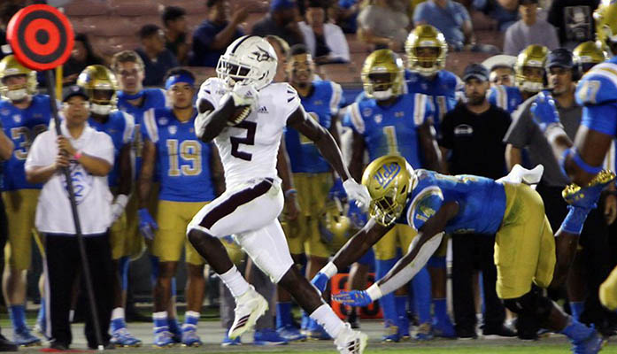 Arizona State’s Brandon Aiyuk gained yards against UCLA but the Bruins’ offensive was overpowering. (Photo by Kennedy Wilkerson/Cronkite News)