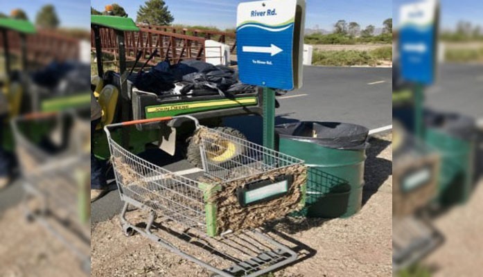 Grocery cart abandoned along The Huckelberry Loop [Photo by Laura Fuchs]