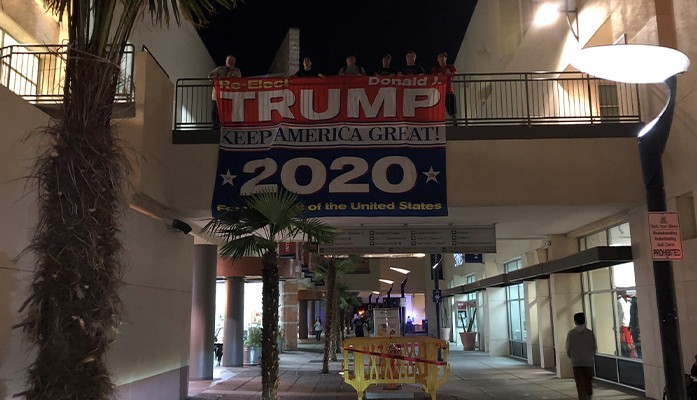 Censorship and violating freedom of speech is alive and well in the heart of Tucson at the University of Arizona. On Thursday night, after a meeting of the UA College Republicans, some members took the opportunity to express their support for President Donald Trump in posing with a large flag at the Student Union Memorial Center.