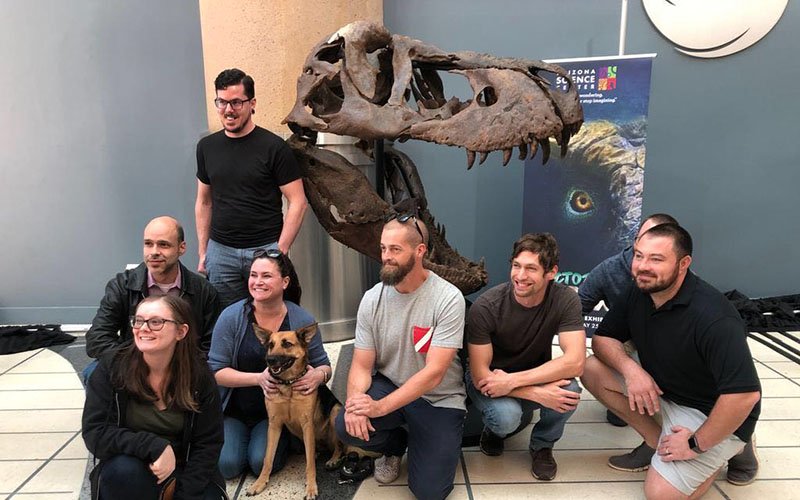 Victoria1-800 Spectators gather around the massive skull of Victoria, the largest traveling T. rex skeleton in the world, at its world debut this month at Phoenix City Hall. (Photo by Sabine Galvis/Cronkite News)