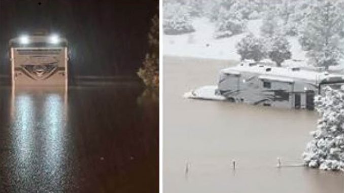 According to the Yavapai County Sheriff’s Office, at around 4:30 a.m., the office received a call regarding floodwaters surrounding a truck and fifth wheel on Forest Road 142H just off Highway 260 outside of Camp Verde.