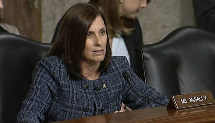 Senator Martha McSally questions witnesses during a Senate Armed Services Committee hearing on a Government Accountability Office report that detailed weak oversight of the 14 companies running housing complexes across the U.S. on military bases.