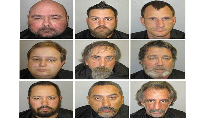 mugshots Top row from left: Hawkins, Dumitrascu, Garner; middle row Norman, Hamsher, Montgomery; botom row Davilla, Lopez, Echternach.
