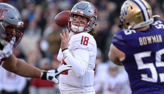 football Washington State Cougars quarterback Anthony Gordon has passed for 5,228 yards and will present a challenge for the Air Force defense in the Cheez-It Bowl. (Photo by Jeff Halstead/Icon Sportswire/Cronkite News)