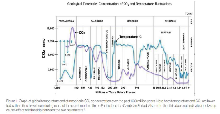 In his concluding remarks, Moore briefly discusses the politics of CO2 and notes: “ Lost in all these machinations is the indisputable fact that the most important thing about CO2 is that it is essential for all life on Earth and that before humans began to burn fossil fuels, the atmospheric concentration of CO2 was heading in a very dangerous direction for a very long time.”