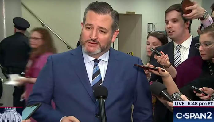 Sen. Ted Cruz, R-Texas, one of many senators who speak to reporters during President Donald Trump’s impeachment. While senators are supposed to be impartial jurors during the trial, they have done some very unjury-like things. (Photo courtesy C-SPAN)