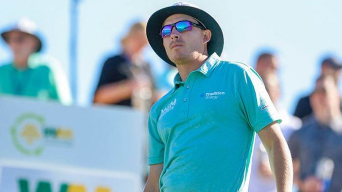 Joel Dahmen, standing on the 11th tee during the third round of the Waste Management Phoenix Open, finished strong Friday to just make the cut. (photo by Brady Klain/Cronkite News)