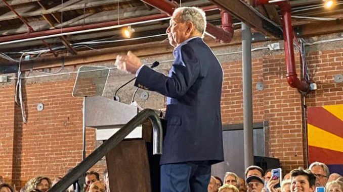 PHOENIX – Democratic candidate Michael Bloomberg appeared before a small but enthusiastic crowd on Saturday. Arizona House of Representatives member Cesar Chavez introduced Bloomberg.