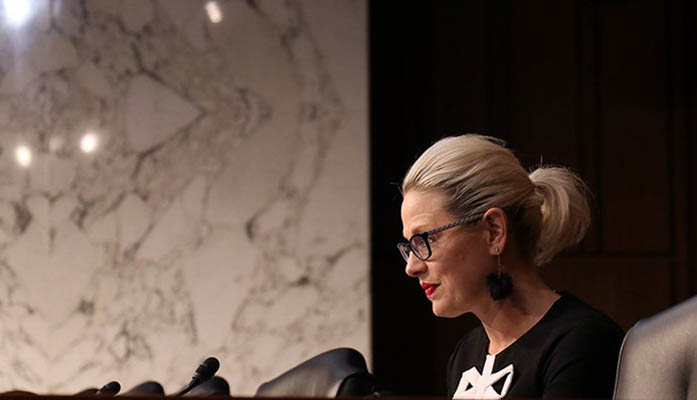 Sen. Kyrsten Sinema, D-Arizona, voted with other Democrats and two Republicans in a failed effort to call more witnesses to testify in the impeachment trial of President Donald Trump, which is expected to come up for a final vote next week. (Photo by Keerthi Vedantam/Cronkite News)