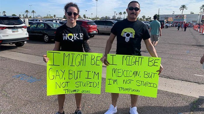 Nicole Rogers and Isaac Cobos started the trek from Roswell, New Mexico, at 1 a.m. this morning. Rogers says she never misses a Trump rally. (Photo by Jordan Elder/Cronkite News)